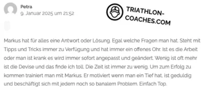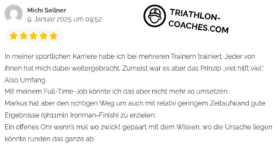 Mit über 20 Ironman und Marathon-Finishes und der erfolgreichen Betreuung von mehr als 100 Athlet:innen verbinde ich jahrzehntelange Praxiserfahrung mit modernster Trainingstechnologie. Meine Athleten reichen vom ambitionierten Einsteiger bis zum Hawaii-Qualifier und Ultra-Triathlon-Sieger.